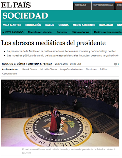 El diario El País, a raíz de la segunda investidura de Barack Obama como Presidente de los EEUU, publica un amplio reportaje sobre su comunicación en contraste con la comunicación de los presidentes españoles y el papel de familias y primeras damas en los dos países. En él encontrarán mis opiniones junto a las de Borja Puig de la Bellacasa, consejero delegado de Bassat Ogilvy Comunicación, Jeff Thompson, investigador de comunicación no verbal de la Universidad de Pittsburgh, Xavier Roig, consultor de comunicación estratégica y Olivia Fox Cabane, autora del libro «El mito del carisma» y experta en técnicas de comunicación y liderazgo. Aquí puede leerlo